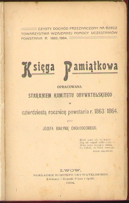 "Czcij przodków twych pamięć, czcij ojców mogiły:W ich dziełach, zasługach krzep ducha, krzep siły..."