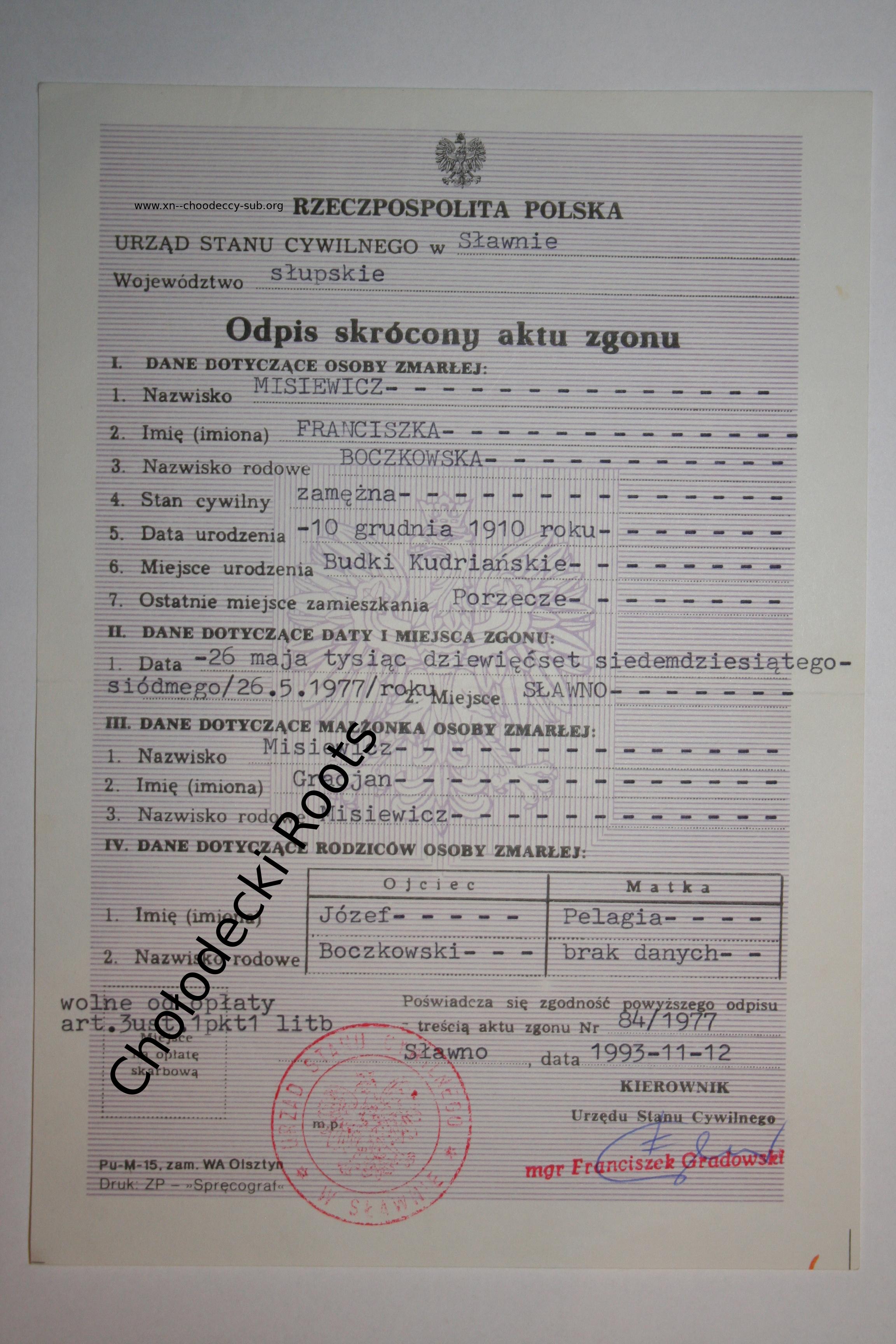 | Media object | 340 STANISLAWA BOCZKOWSKA akt zgonu.jpg Format: image/jpeg Image dimensions: 2,304 × 3,456 pixels File size: 3,628 KB Highlighted image: no Note: