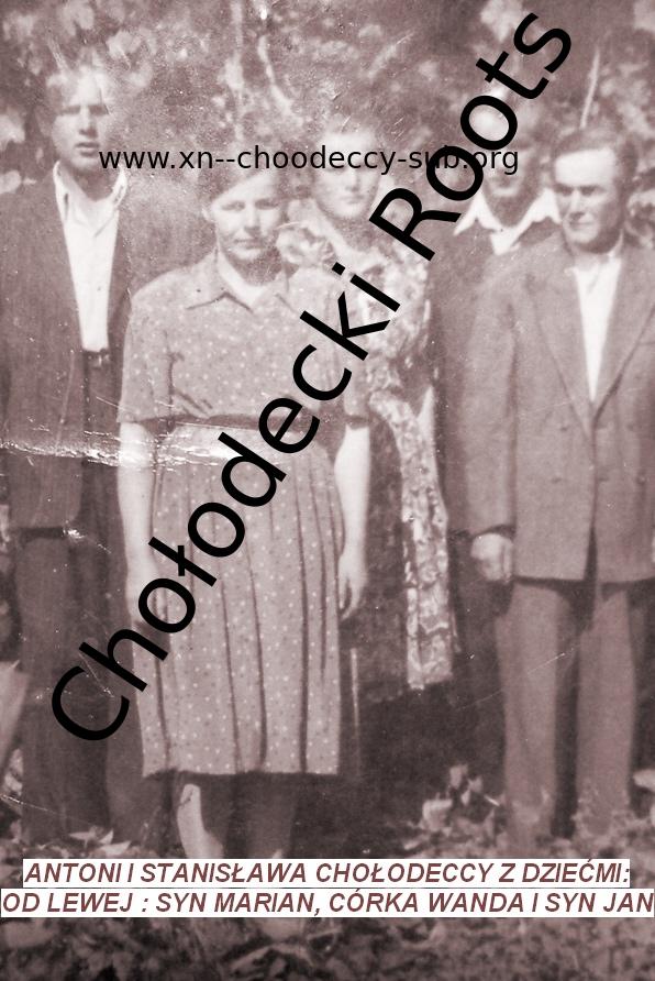 | Antoni Chołodecki | January 24, 1904 | 122 | Kudranka, gm. Ludwipol, pow. Kostopol, Wołyń, Poland (Ukraine) | 3 | August 8, 1957 | 68 | 53 | Wińsko, dolnośląskie, Poland | February 22, 2011 - 11:37:40 p.m. | M | YES | Y100 | ||||