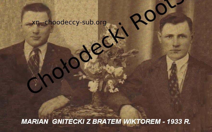 | Note | Gnitecki Wiktor (syn Rafała i Elżbiety z d. Konsewicz) i żona Józefa z d. Boczkowska (córka Józefa i Pelagii). Na Wołyniu urodziła się córka Antonina (1941). W 1943 r. zostali wywiezieni do Niemiec na roboty, gdzie urodziła się córka Krystyna. Po wojnie osiedlili się w Konstantynowie Łódzkim, w którym urodził się ich syn Jan - mój ojciec. Rafał Gnitecki zmarł około roku 1914. Jego żona Elżbieta dożyła starości w Wińsku na Dolnym Śląsku. W Kudrance i okolicach zajmowała się przyjmowaniem porodów.